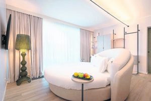 Schon beim Betreten der Lobby fällt auf, wie leicht sich hier atmen lässt. Helle Farben, klare Linien, natürliche Materialien – alles wirkt offen und freundlich. In den 107 Zimmern und 18 Suiten setzt sich dieses Gefühl fort: viel Licht, beruhigende Erd- und Naturtöne, Holz, Stoffe, die man gerne anfasst. Jede Unterkunft verfügt über einen Balkon oder eine Terrasse, einige sogar über einen kleinen privaten Garten. Abends, wenn der Gardasee in warmes Licht getaucht ist, wird dieser Außenbereich zum Lieblingsplatz – ein Glas Wein in der Hand, der Tag im Kopf zieht noch einmal vorbei.